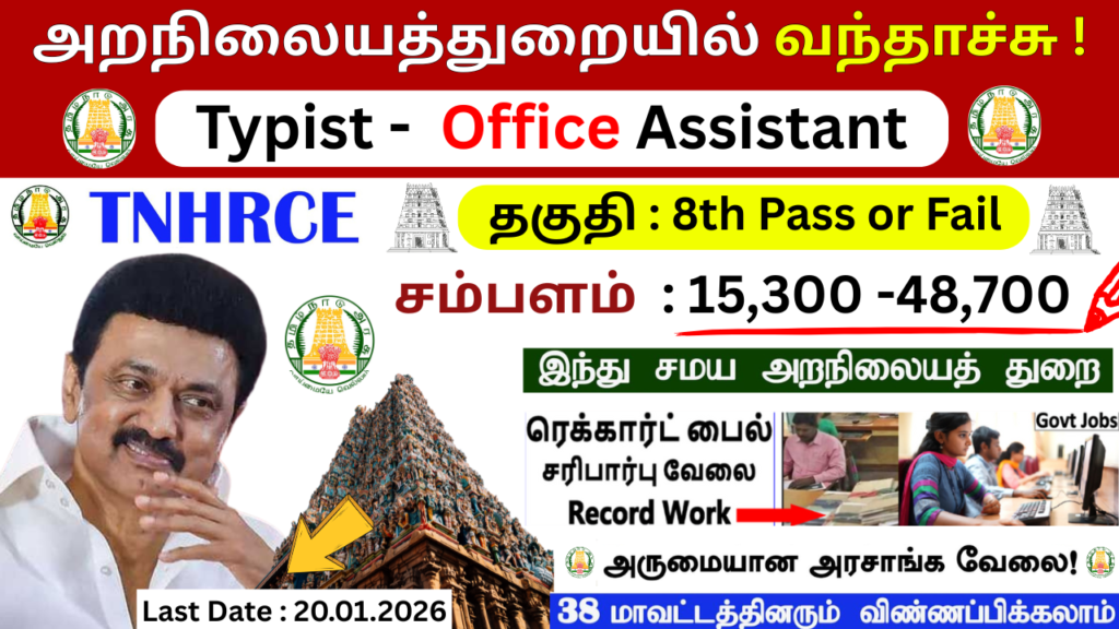 TNHRCE Chennai Recruitment 2025, TNHRCE Typist Vacancy, TNHRCE Office Assistant Jobs, Tamil Nadu Government Jobs 2025, TNHRCE Chennai Offline Application, Chennai Govt Jobs, 8th Pass Govt Jobs Tamil Nadu, ITI Jobs in Chennai, TNHRCE Vacancy Notification